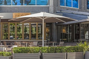 • As the telescoping Nova cranks down, the top portion of the mast rises, allowing you to completely close the umbrella without having to move any furniture placed underneath