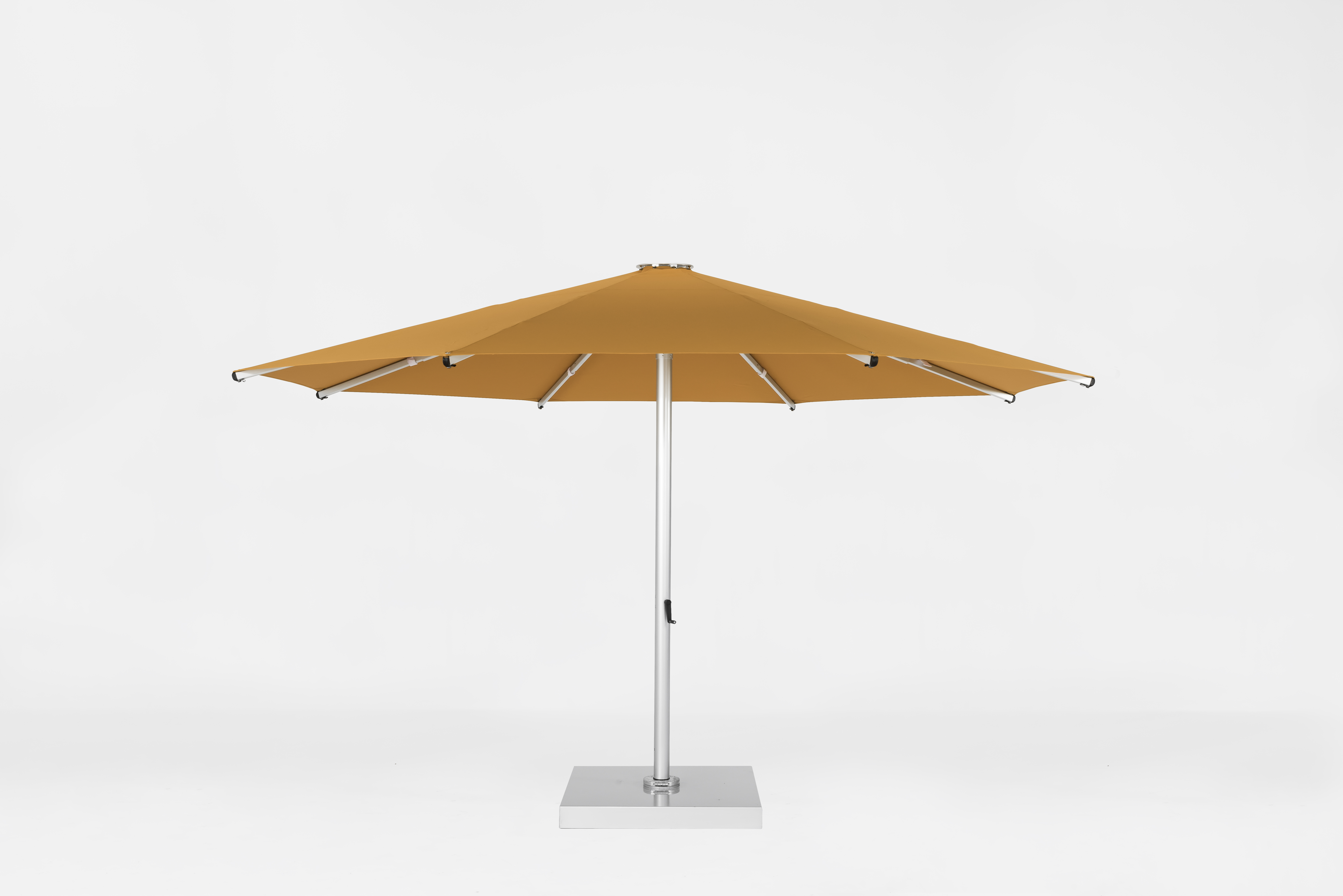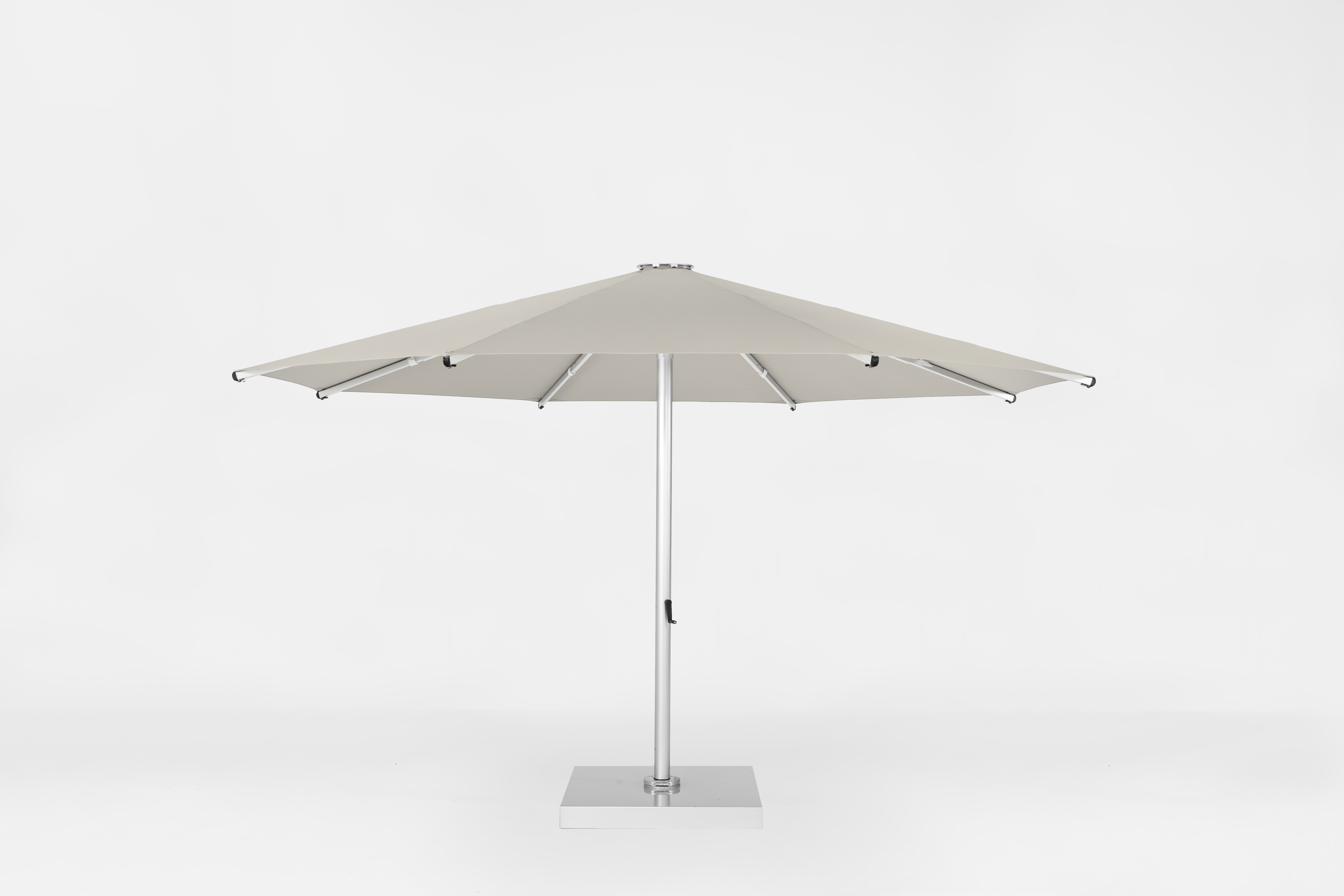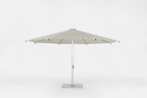 • For easier installation of an umbrella this large, the Nova mounts to a hinged spigot. This allows for the umbrella mast to be placed onto the spigot while the unit is on its side, prior to raising it to an upright position.