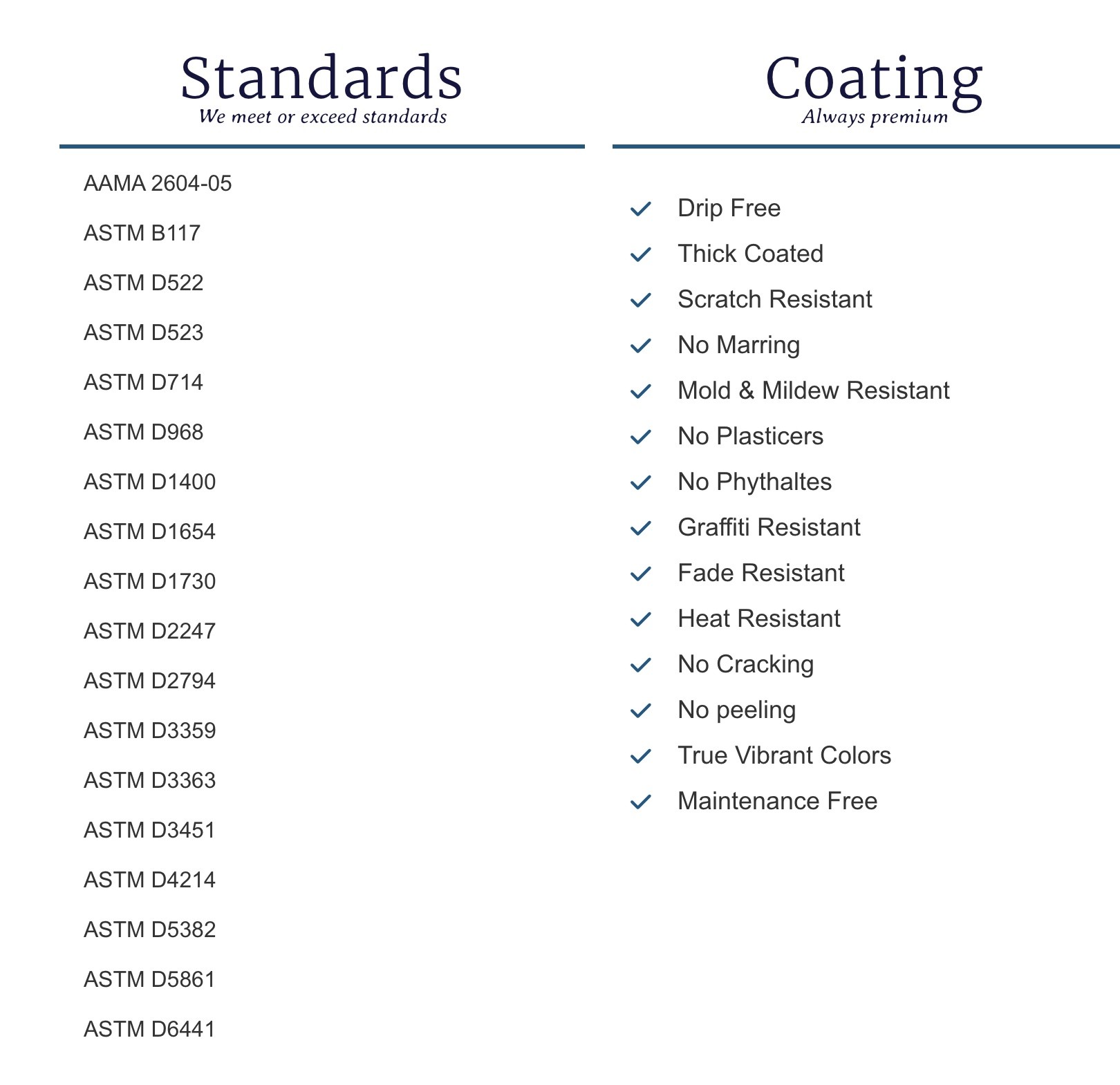 Our products are not made with Plastisol, so there are no PVC, phthalates, fabric softener or other environmental concerns. Because we have properties in common with plastisol, we also have properties in common with polyethylene. Like polyethylene, MyTCoat is UV and fade resistant and won’t crack, peel or warp. MyTCoat does not leave scars, scratches or damage like polyethylene products and does not have a dull texture that hides imperfections. Our coatings have superior wear and cut resistance and are easy to clean. The durability of MyTCoat cannot be matched by any other coating on any steel coated outdoor furniture sold today