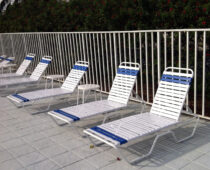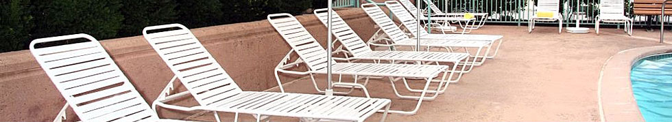Our line of commercial pool furniture offers contract solutions for hotels, motels, resorts, and amusement/water parks. We carry aluminum straps and sling chairs in various colors and styles, so it is easy to match your resort furniture to the look of your pool. We are proud to offer USA-made resort pool furniture produced in Florida. Your order for commercial poolside furniture is shipped expeditiously. We also offer a 5-year frame and finish commercial warranty on all our resort pool furniture.