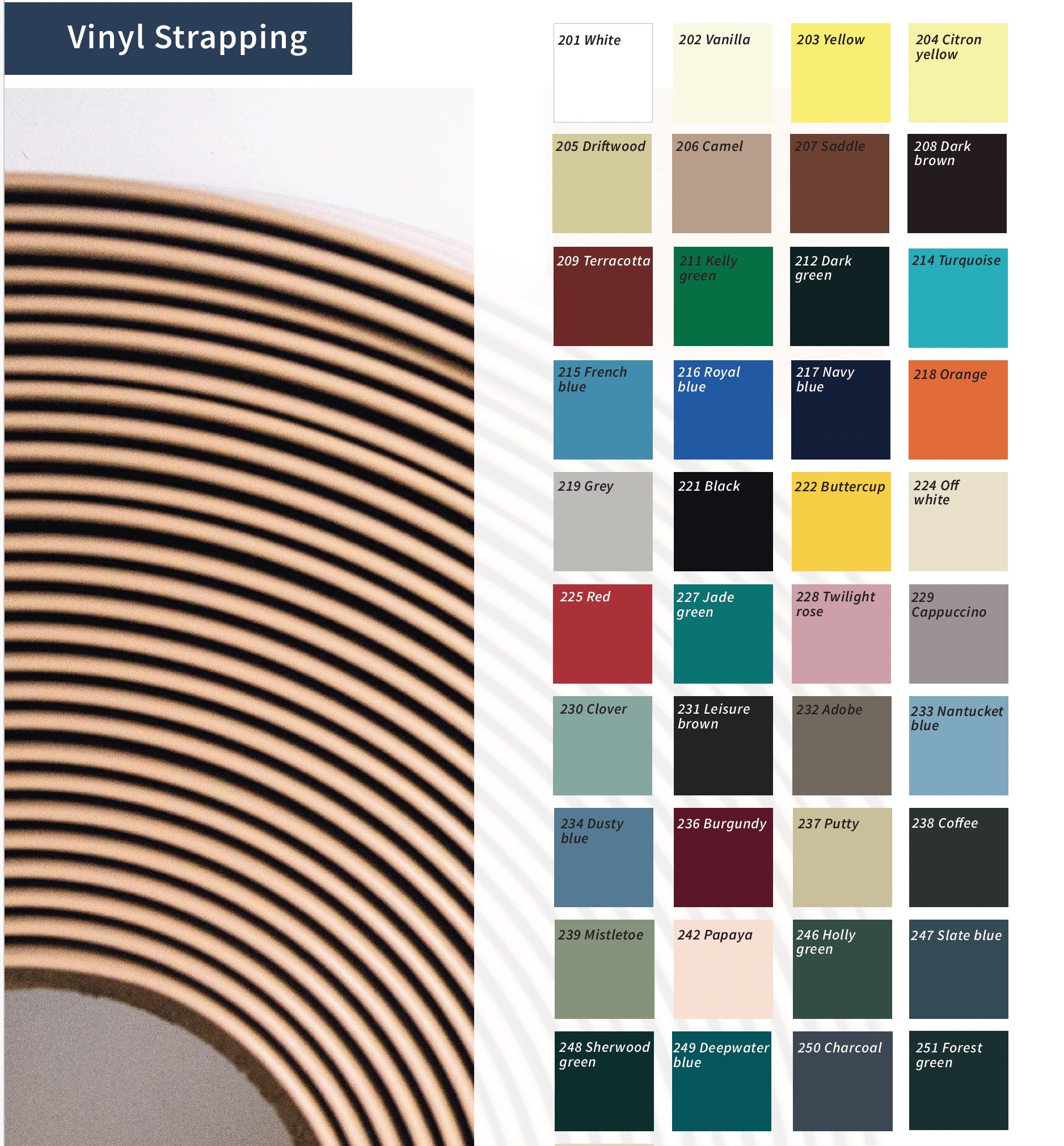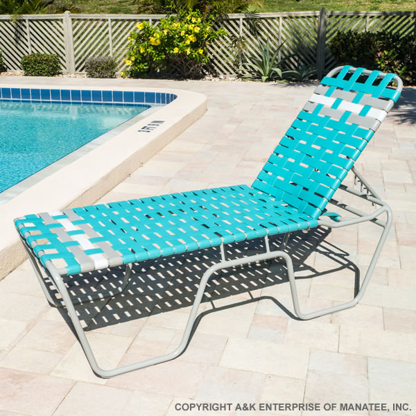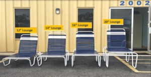 Our Resort strap furniture has 1″ round extrusions and 2″ wide virgin vinyl. It is also double wrapped for ensured strength and durability. It is also specially treated for fade resistance and comes in a variety of colors. Making it a perfect choice for commercial applications