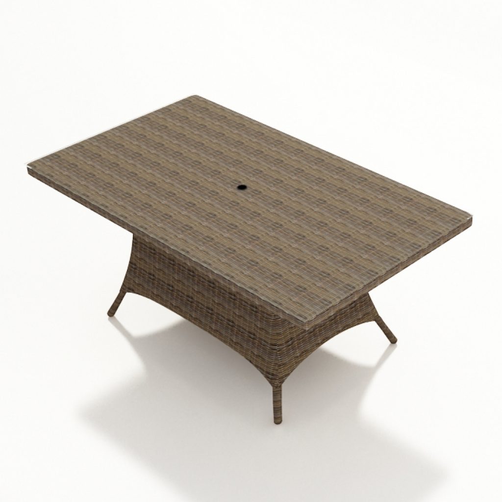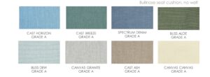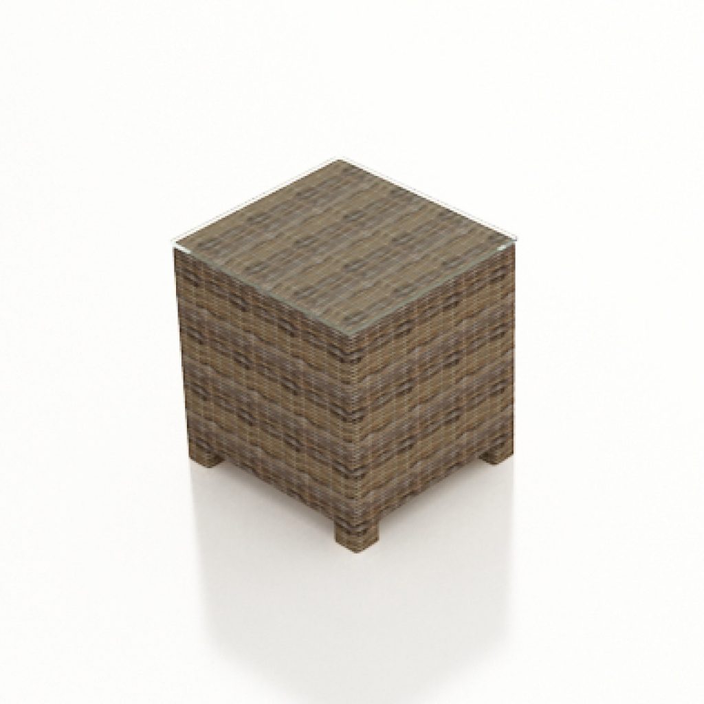 The Catalina collection boasts a durable resin weave over a sturdy commercial grade aluminum frame. The pieces are made of indoor/outdoor wicker and are weather and UV resistant. Maintenance of the frame and fabric is easy and the pieces can be cleaned with mild soap and water.